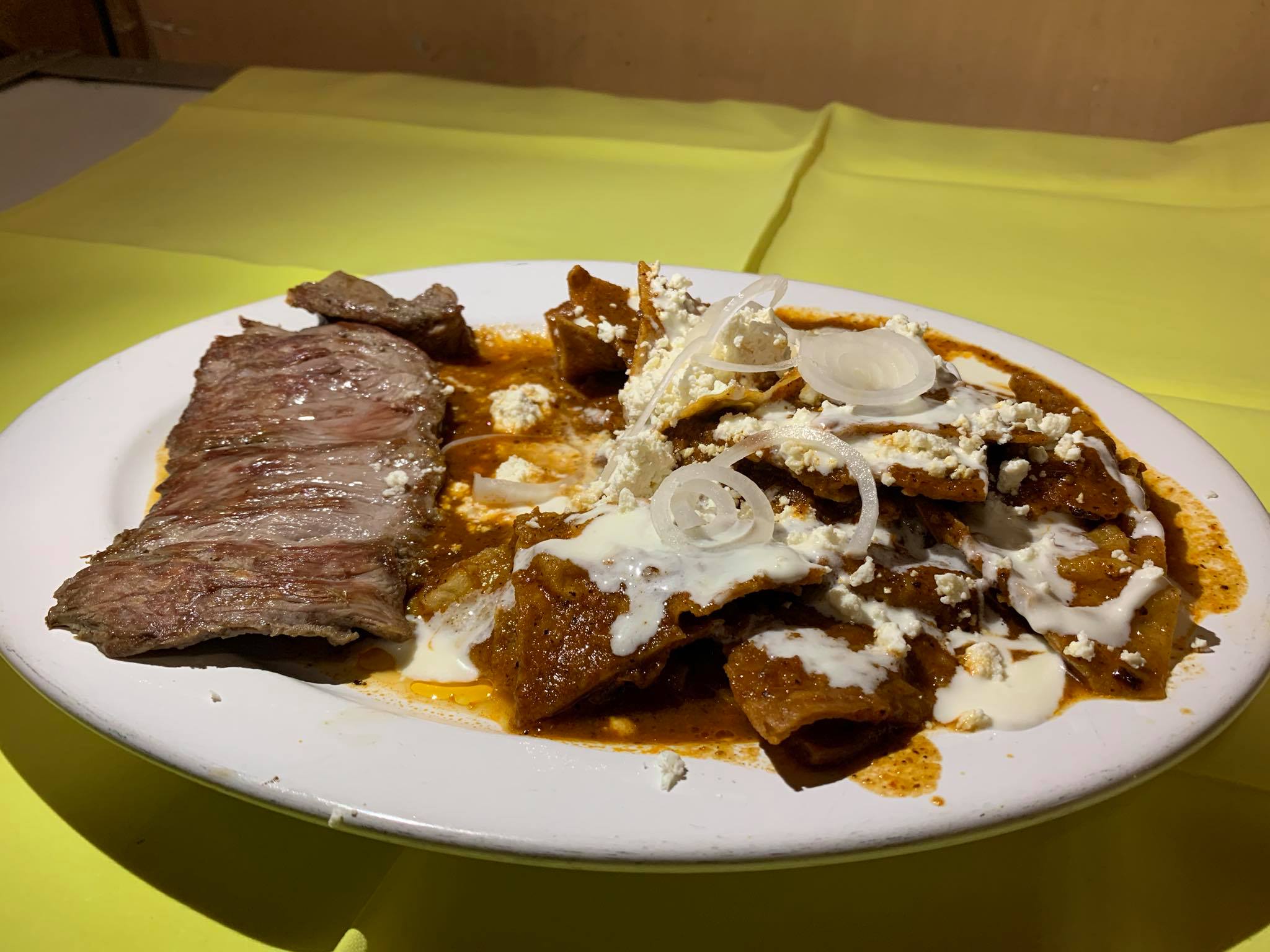 (Deliciosos chilaquiles verdes ó rojos, en salsa de jitomate ó tomate, cebolla, queso y crema)